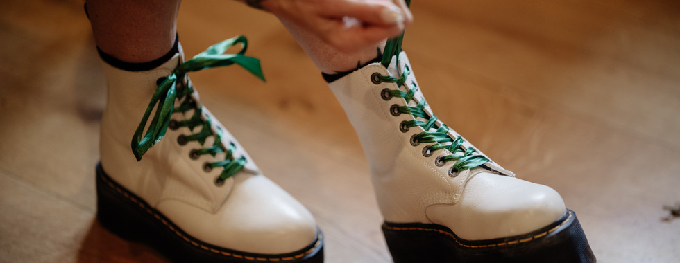 The morning rolled on at a relaxed, comfortable pace. Family members drifted in and out, the groom’s party made the odd appearance, and before long Lisa’s dad was ready to see his daughter in her wedding dress for the first time… Docs and all. The embrace that followed, hands scrambling as they signed to each other with pure emotion, is a moment that will stay with us for a long time. A final buttonhole adjustment from his granddaughter, a few last touch-ups, and it was time.