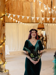 The barn filled with quiet anticipation, guests seated in a semi-circle, smiles everywhere. The ceremony itself was led by Lisa’s eldest son, which added an extra layer of emotion from the start. Spoken sections were signed by interpreters for Deaf and Hard of Hearing guests, resulting in applause, laughter, and a room absolutely buzzing with love.