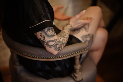 We set up quietly in the corner, loaded cameras, prepped gimbals, checked batteries, and got to work capturing the morning as it unfolded. And true to form, this wasn’t your average bridal look. A black veiled overskirt, white and green high-top Doc Martens, skull-adorned florals, and even a coffin-shaped ring box. Absolute perfection.